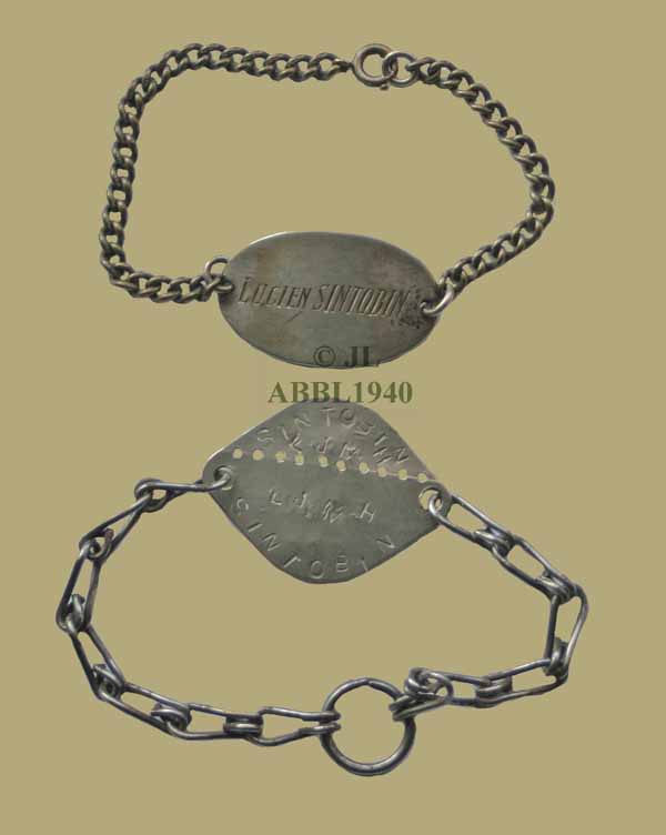 In de periode van het interbellum komen nogal wat naamplaatjes voor die kwa vorm, metaalsoort en gebruikte ketting sterk afwijken van de sobere militaire uitgiftes. Deze plaatjes zijn voor "zondagsgebruik". Velen zijn ook verzilverd of verguld. | ||||||||