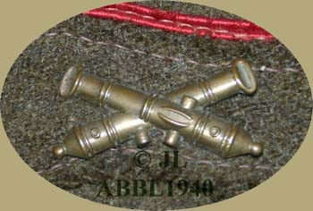 Hogervermeld model is in gebruik als kepie en epaulettenattribuut bij (veld) artillerie, -school, de AA artillerieschool in de periode 1950-1959, en de territotriale AA eenheden van 1950- 1954. |