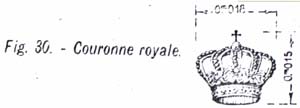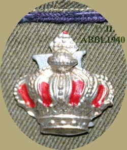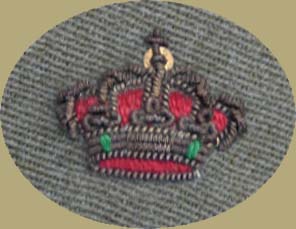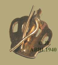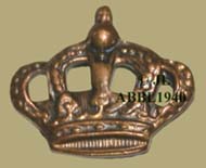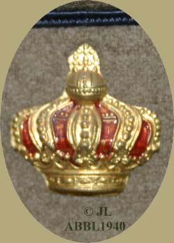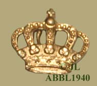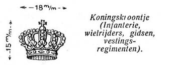 Vergulde en ingeverfde kroon van een officierskepie. De afmetingen zijn 27 mm breed en 27 mm hoog. |