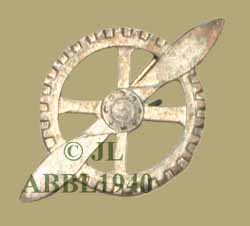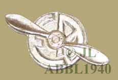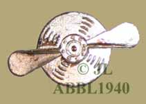 Attribuut van de "Etablissements d'Aéronautique". Diameter 21mm en schroefoverspanning 40mm. (niet "Ecole d'Application" zoals soms aangenomen wordt. De benaming Ecole d'Application is na-oorlogs.) Dit attribuut komt niet voor in het gewone reglement van 1939 maar wel in een speciaal reglement voor de luchtvaart. Ontworpen in 1939. |