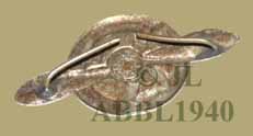 Dik, met zilververf behandeld attribuut voor onderofficier - specialis. Diameter 25mm en schroefoverspanning 40,7mm Bevestiging met twee dunnen ronde pennen. |