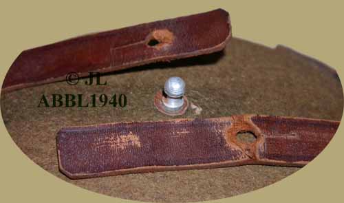 rivetten op de bruine vilten hoes vastgehecht.