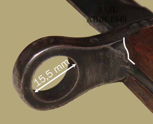 versterkte of afgeronde pareerstang achteraan, geweerring 17,5 mm en een tussenring naar