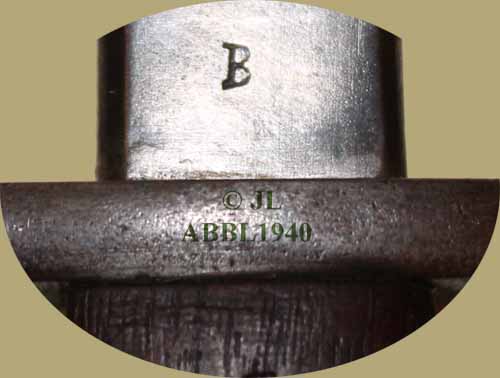 Een derde bajonet heeft rechts de letter B op het ricasso,