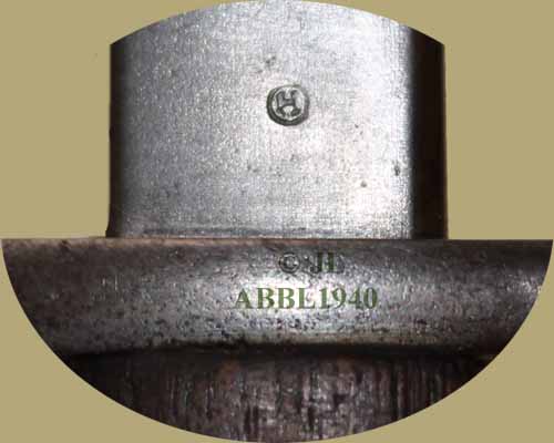 Op de linkerzijde van het ricasso de letter H in een cirkel