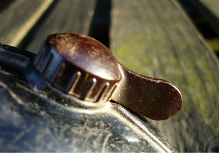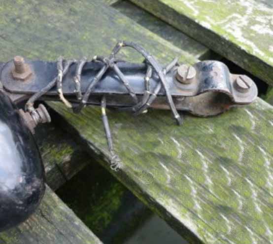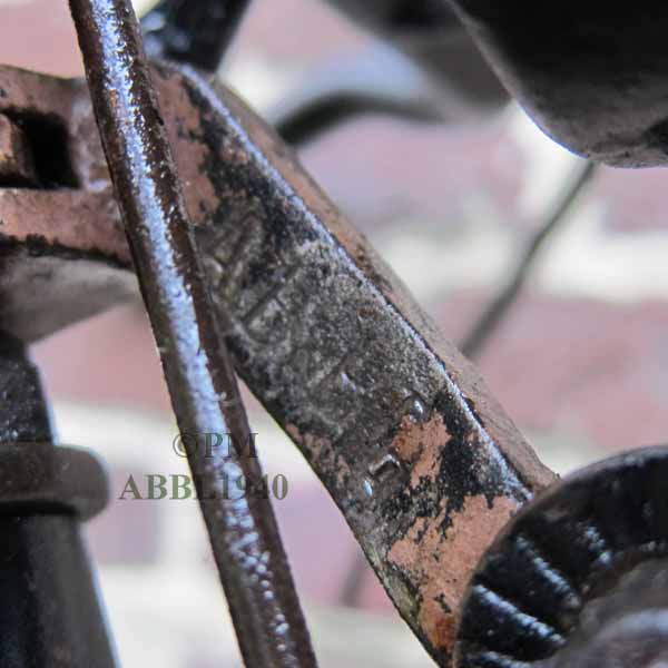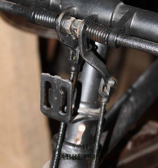 | Een olielampbeugel op een BSA 1915 fiets. De beugel zat nog op het gevonden frame. | ||||