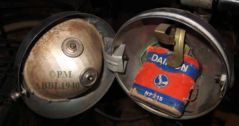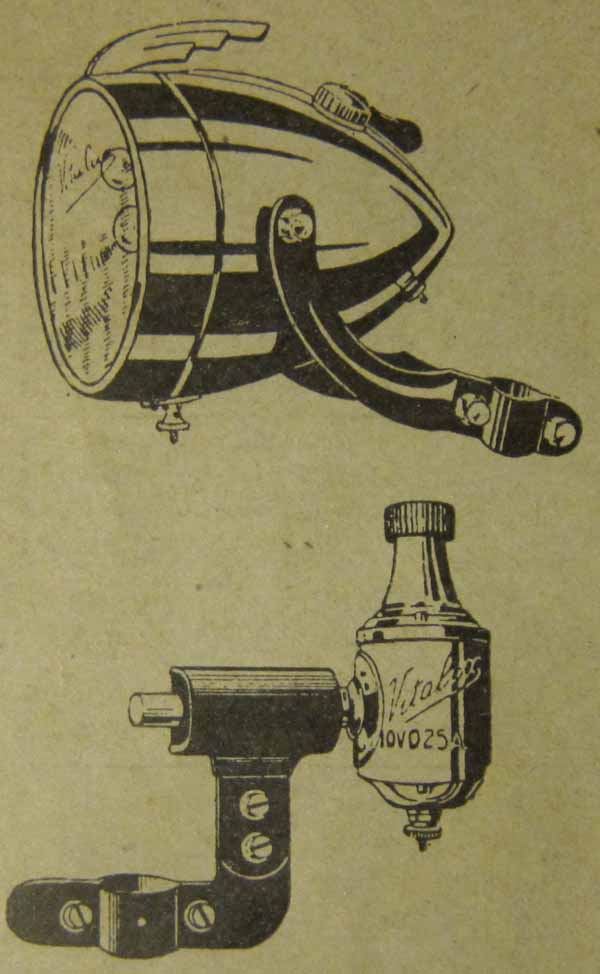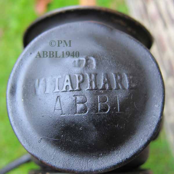 | Acetyleen voorlicht merk VITAPHARE, chroom en/of zwarte lak ontbreekt. Deze werd verwijderd in de naoorlogse jaren om "mooi" te ogen. | ||||