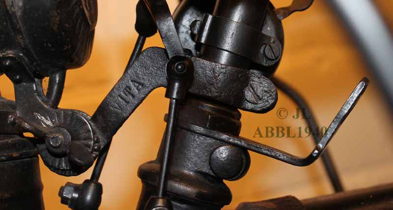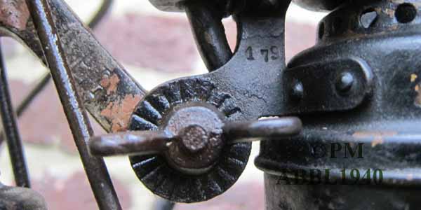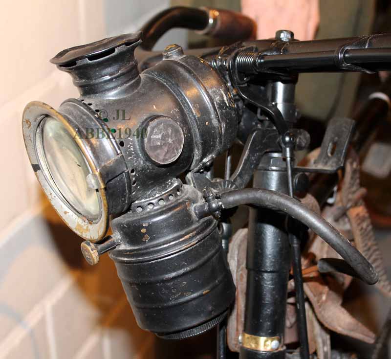 | De fiets heeft 2 lampbeugels, enerzijds een van het merk VITA voor de acetyleenlamp, anderzijds een naar achter gedraaide beugel voor de montage van een olielamp. | ||||