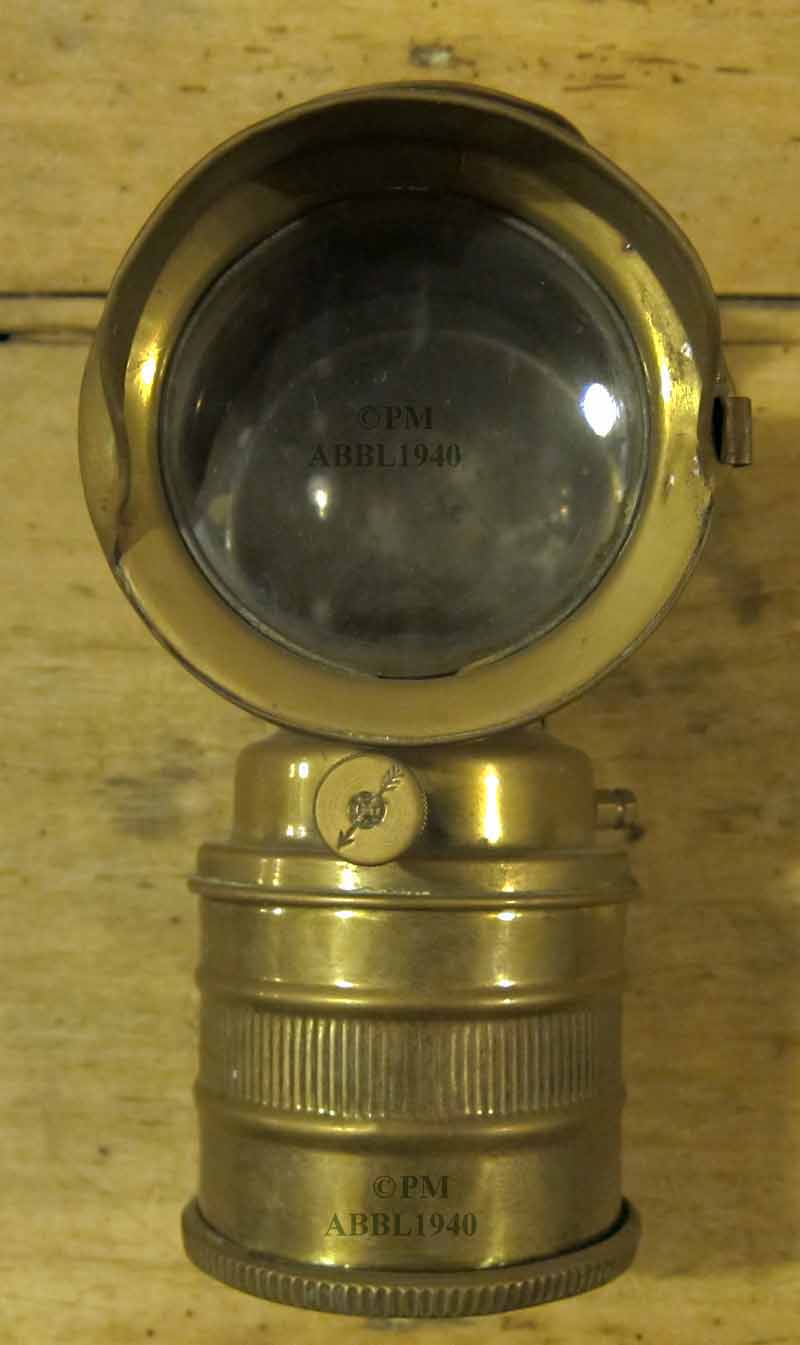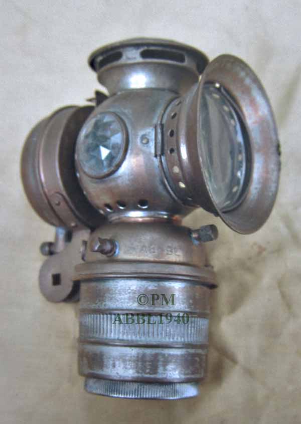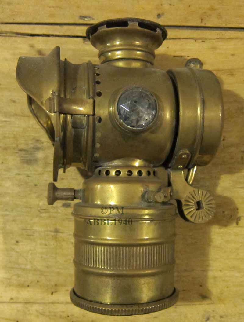 | Ook acetyleenlampen van het merk WILLOCQ - BOTTIN type BELGIA doen hun intrede. Documenten zijn momenteel niet beschikbaar maar de teruggevonden en AB BL gemarkeerde lampen spreken voor zichzelf. Op de bijhorende foto is een WILLOCQ – BOTTIN lamp te zien. | ||||