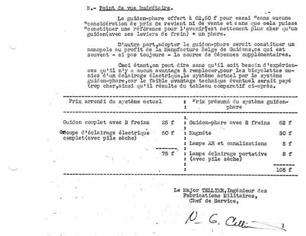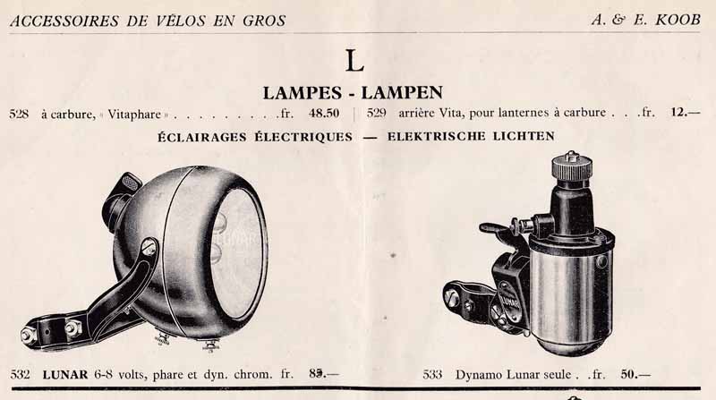 Een gewone herenfiets, met toebehoren en zonder verlichting kost in 1936 ongeveer 530 BEF (13,13 €). De verlichting maakt een behoorlijk deel uit van de kostprijs. 11,5 % voor een acetyleen verlichting en 16 % voor een elektrische verlichting. Deze waarden liggen vergelijkbaar in 1939 voor wat betreft de uitbetaling