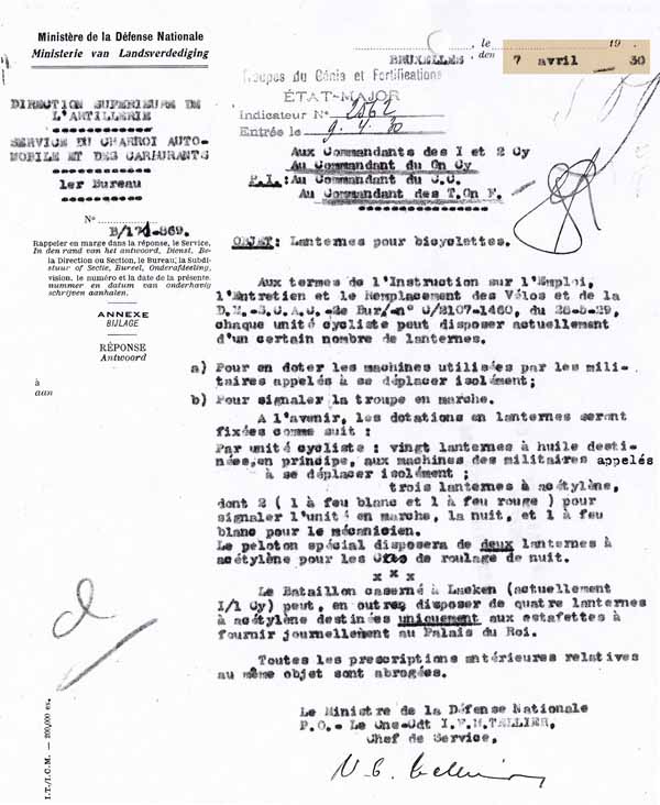 7 april 1930. De toekenning van fietsverlichting voor wielrijders eenheden