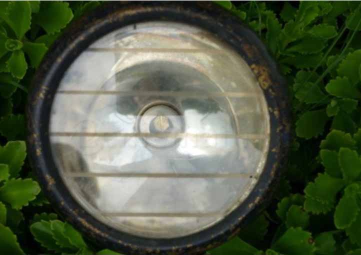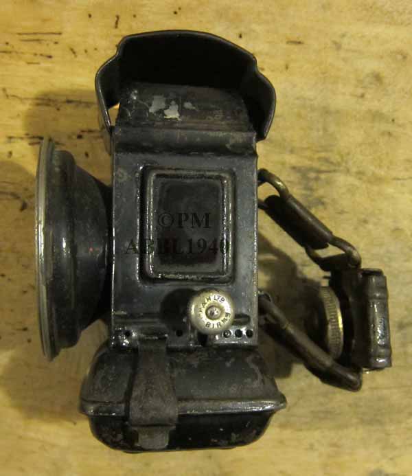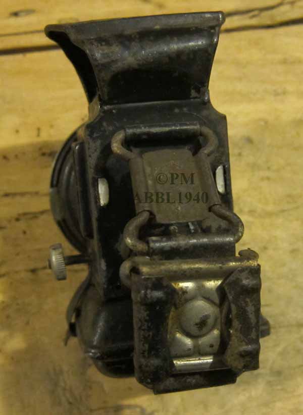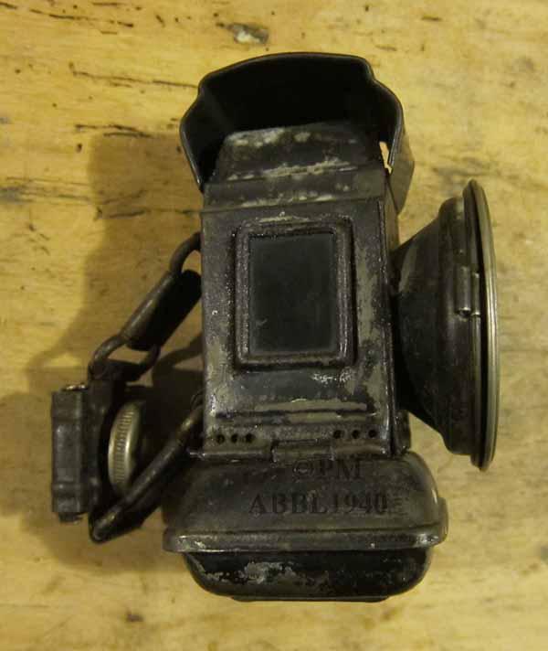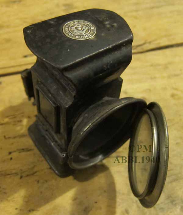 | Een vergelijkbare koplamp, niet militair gemarkeerd, maar wel met de voorziening voor een batterij van een zaklamp. Dit voor de verlichting bij stilstand. | ||||